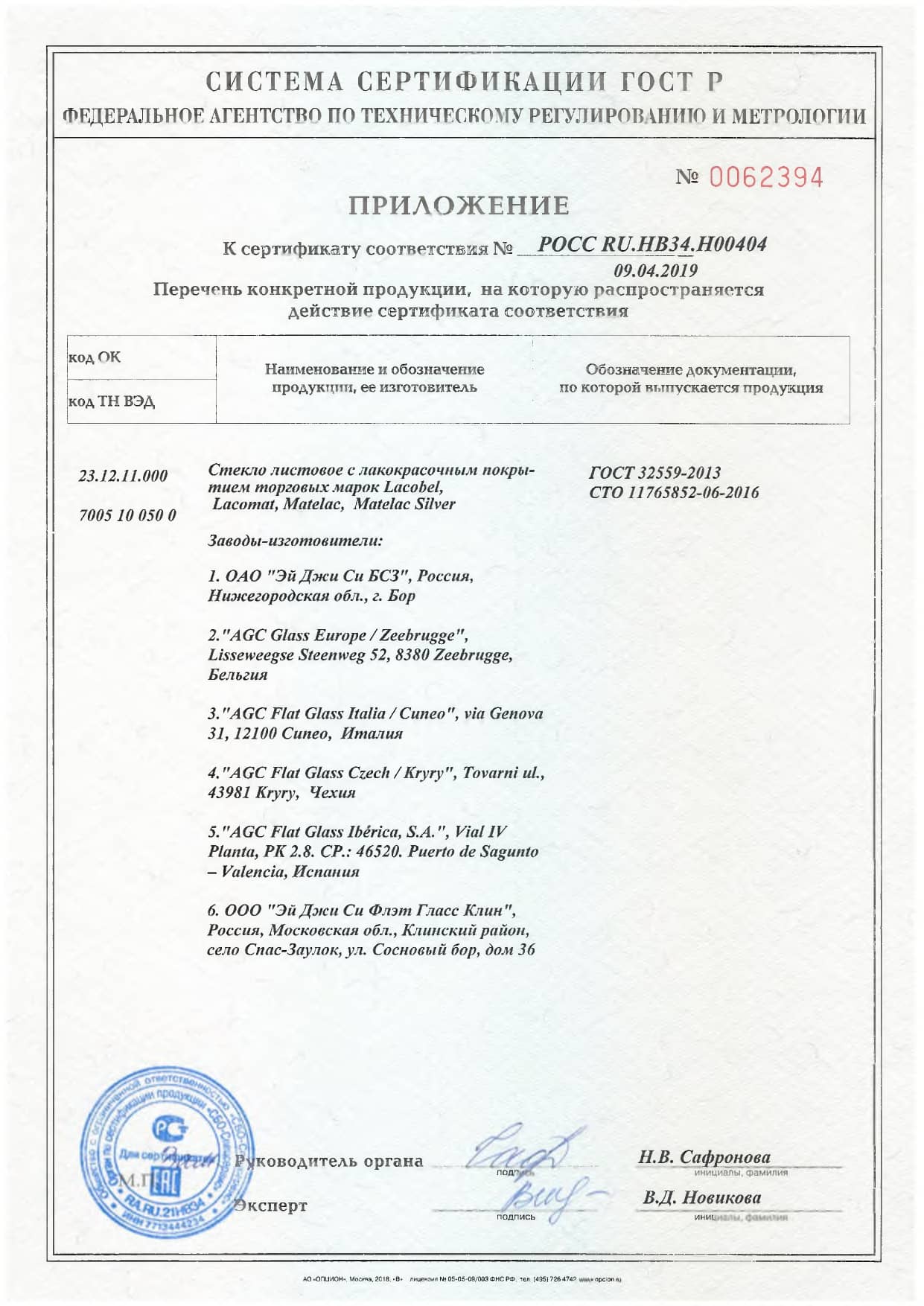 Сертификат на стекло Лакобель