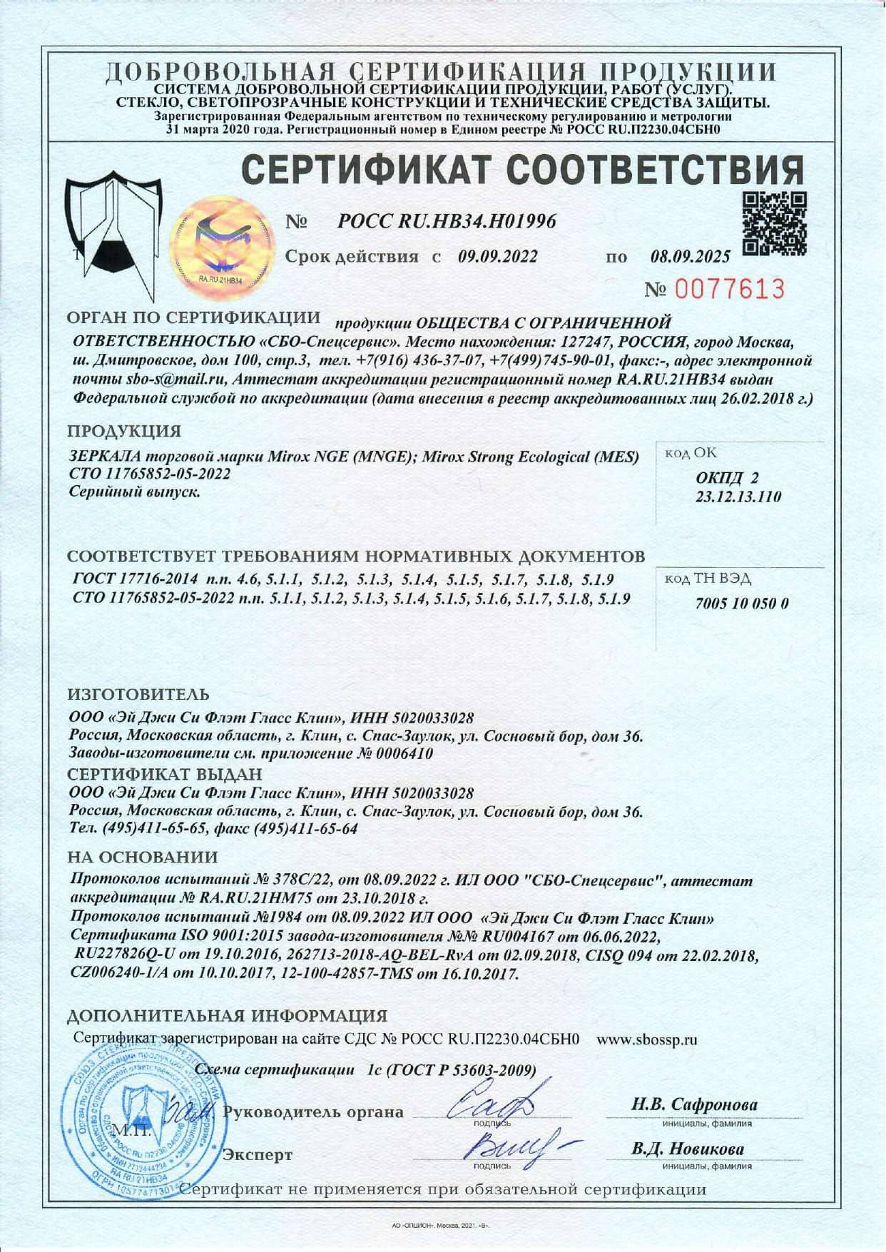 Сертификат на зеркала