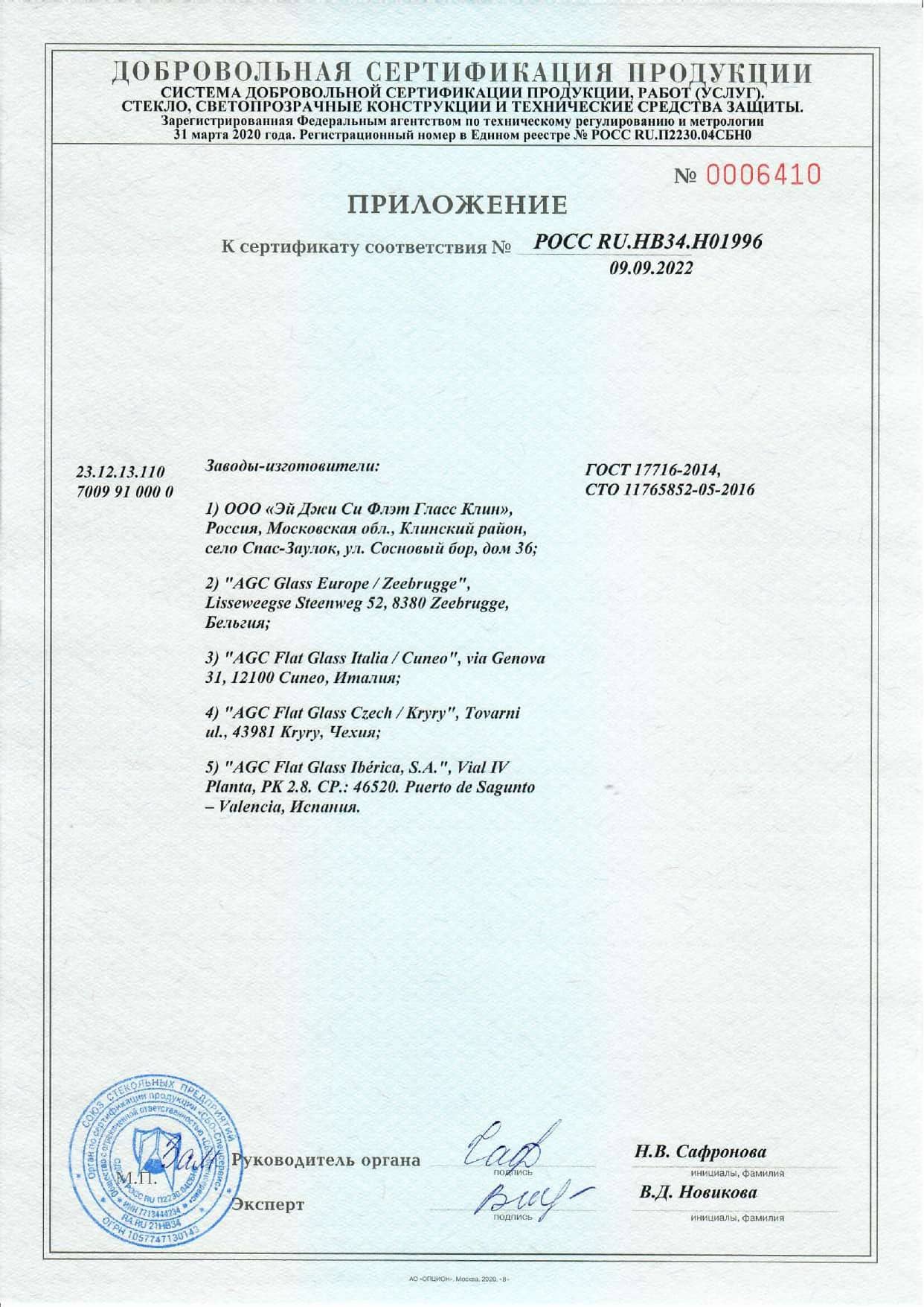 Сертификат на стекло листовое М1, М4