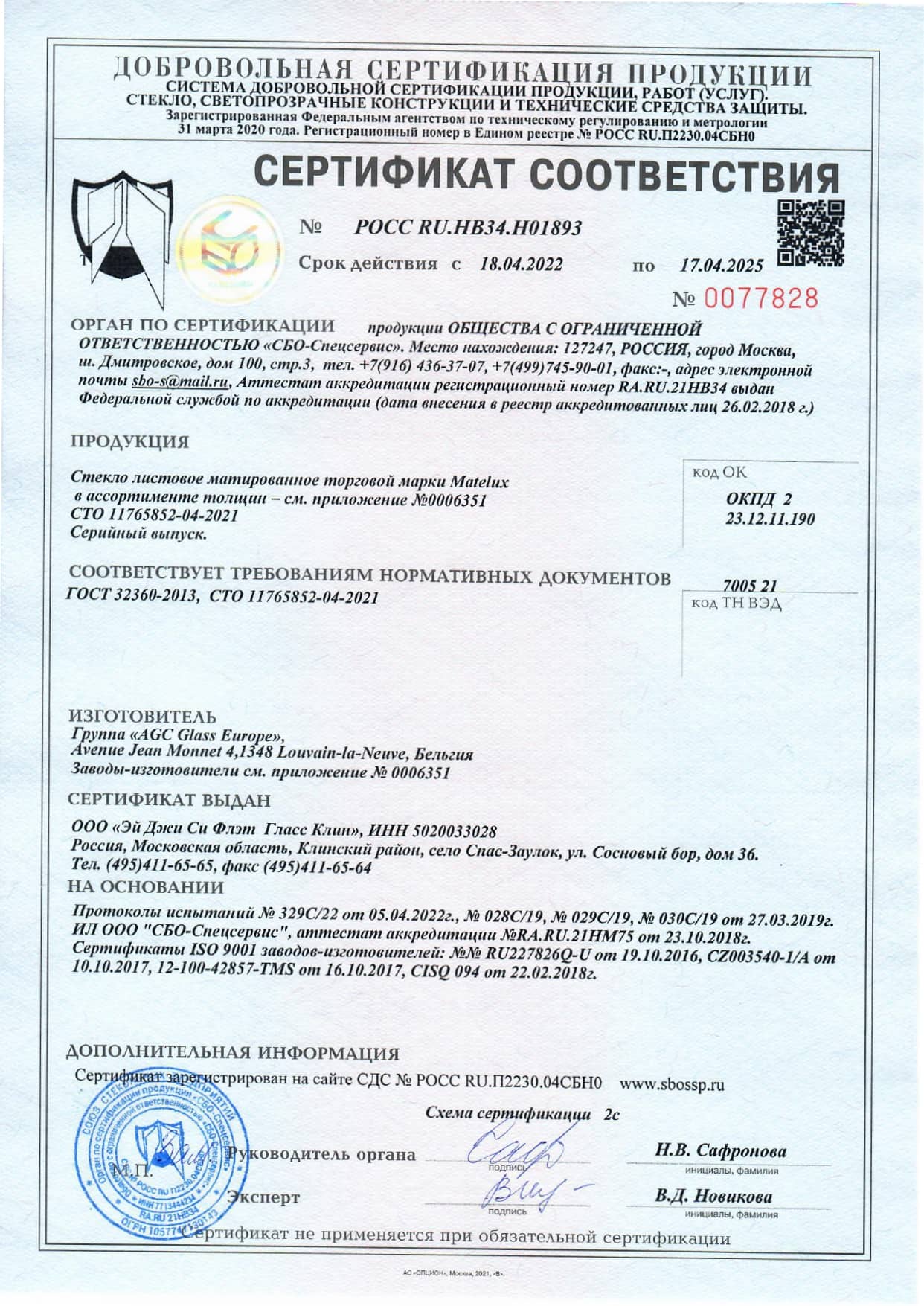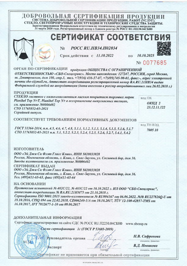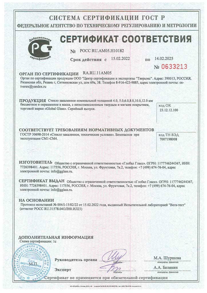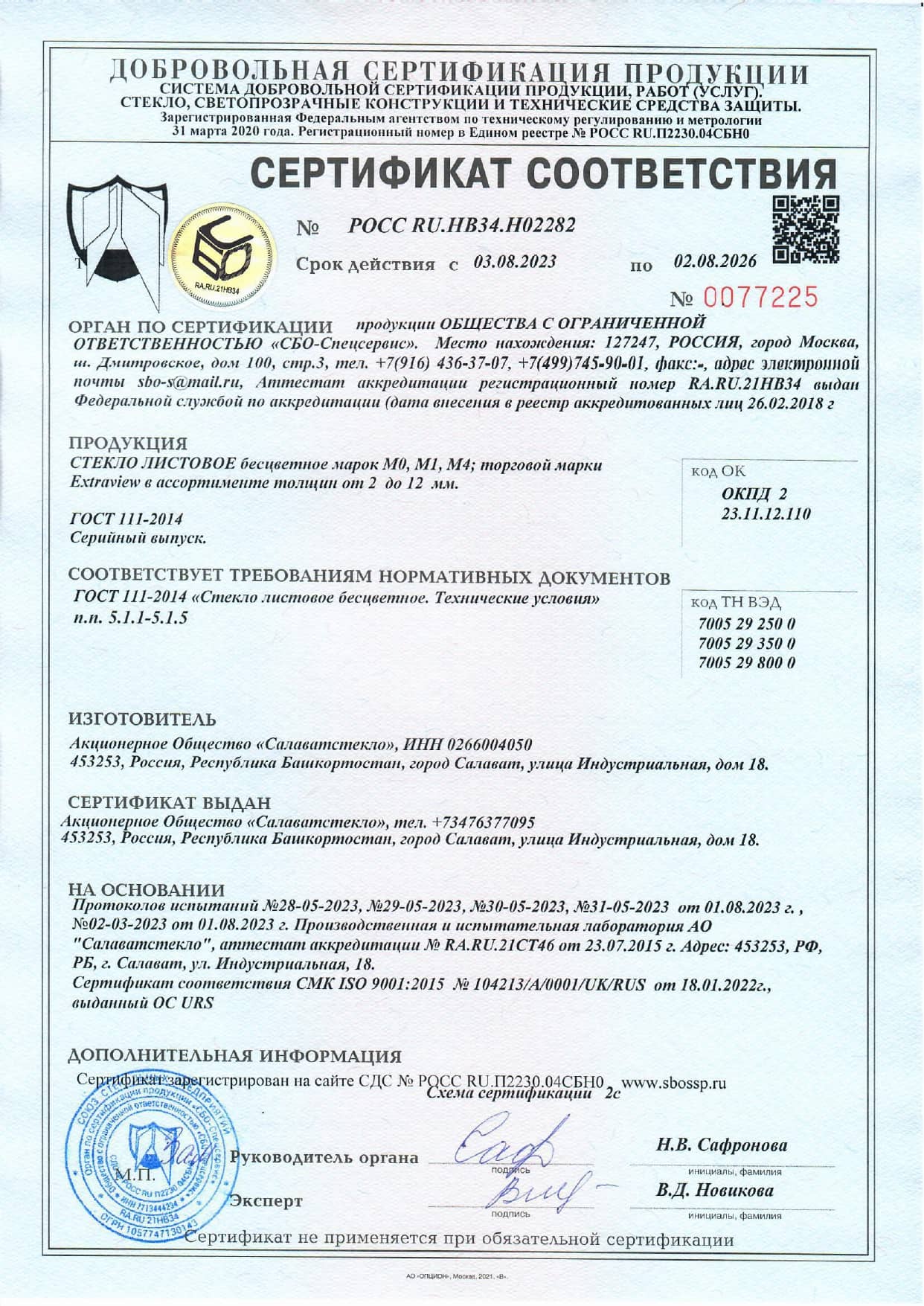 Сертификат на стекло прозрачное